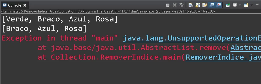 O método asList() retorna uma lista que implementa os métodos de Collection exceto os métodos que alteram o tamanho da lista.