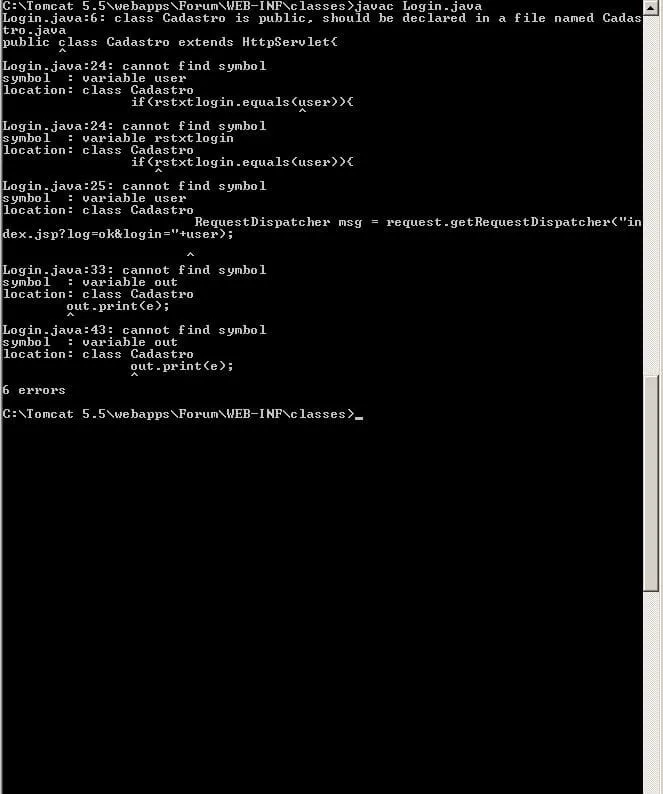 blza galera compilo o problema estava na linha 24 e ao invés de user era login