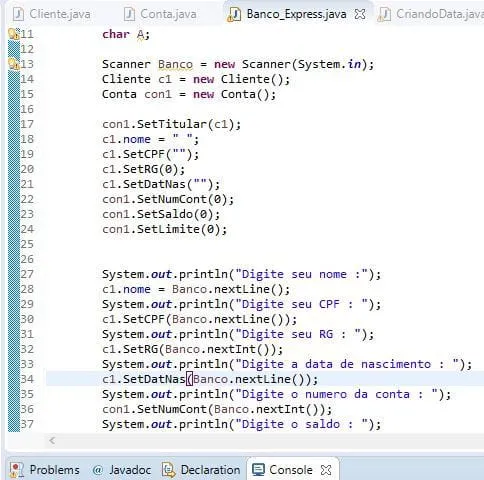 na classe “CLIENTE”