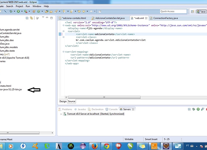 Boa noite, estou começando a estudar java web a pouco tempo, estou estudando pela apostila da caelum. Estou tentando fazer um exercício na qual ele pede para fazer um pequeno formulário como página e preencher esse tal formulário para que os dados vá para o banco de dados. Bom, fiz o formulário e deu certo, apareceu lá na página web, o problema está quando eu preencho o formulário e clico em gravar que aparece esse erro: java.lang.RuntimeException: java.sql.SQLException: No suitable driver found for jdbc:mysql://localhost/test
