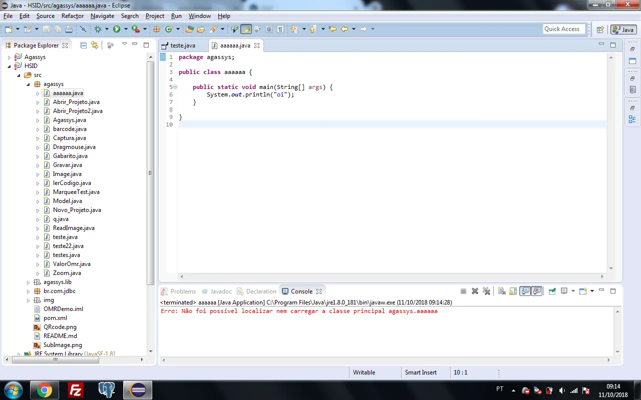 Analise que dentro da pasta do Workspace do eclipse ele não está gerando o .class