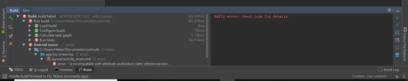 Galera estou com um erro no meu Android Studio e não sei como resolver