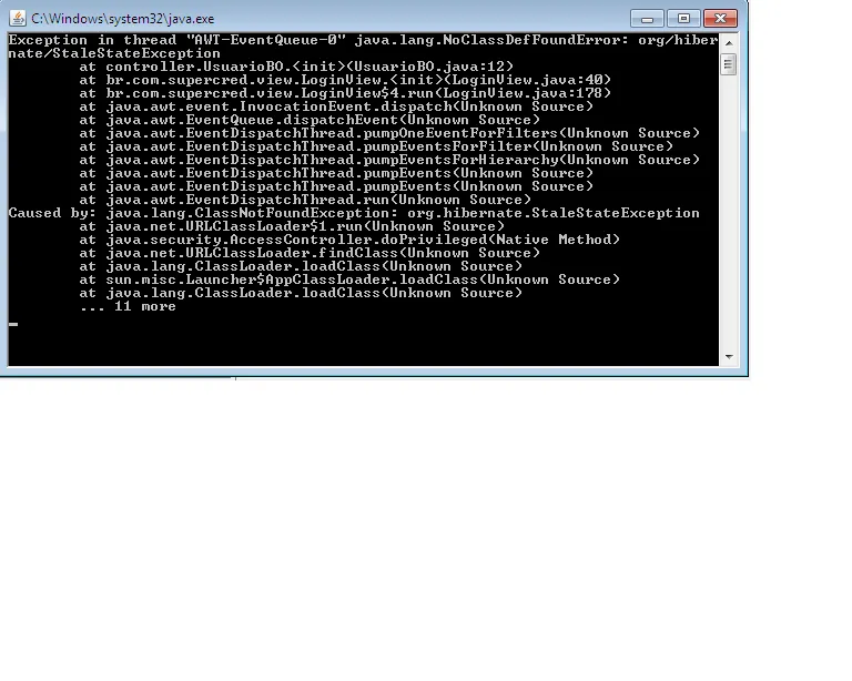 Está ocorrendo seguinte erro no aplicativo quando compilo e gero o .jar executrável, não estou conseguindo resolver.