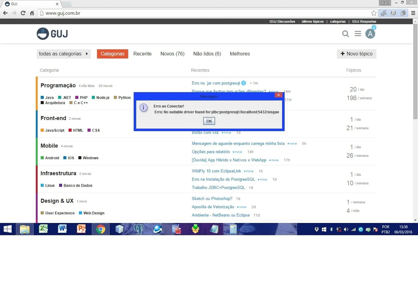ai ele cria de boa minha pasta store mas quando executo o projeto dar erro no banco no driver…