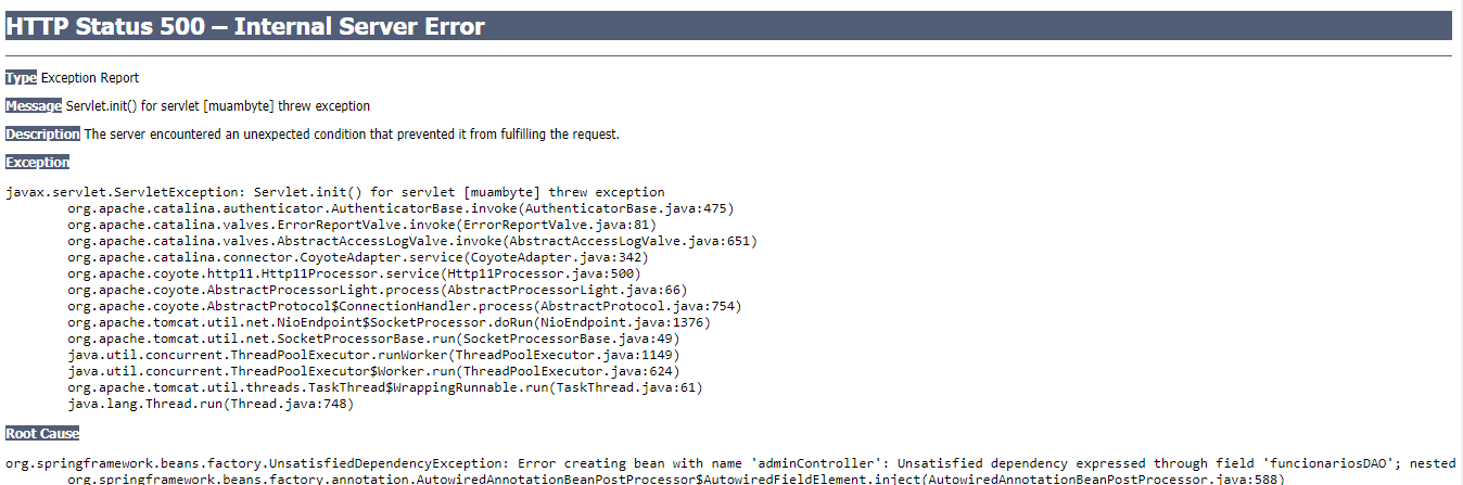 GRAVE: Servlet.service() for servlet [muambyte] in context with path [/muambyte] threw exception [Request processing failed; nested exception is java.lang.NullPointerException] with root cause