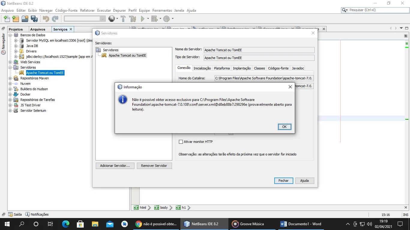 Erro no Netbeans Tomcat 7.0
