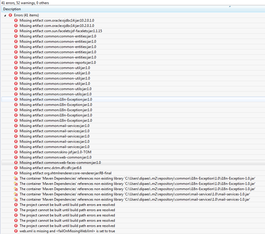 Pessoal estou tentando configurar um projeto em Maven, e estou com o seguintes erros…