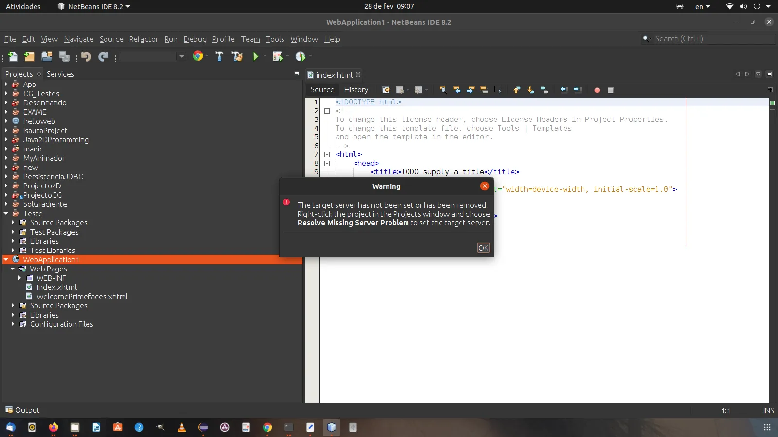 Erro no servidor tom cat no netbean do linux :java web, preciso de ajuda pfv! Não consigo executar java web