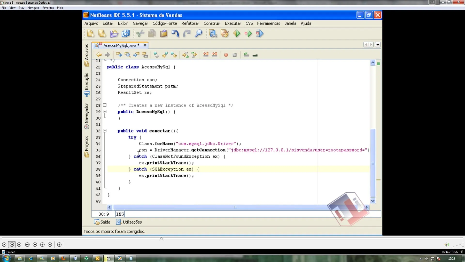 até o bd.conectar(), funciona normalmente, quando eu digito um botão depois do parenteses, era para aparecer o auto completar do "prepareStatement();