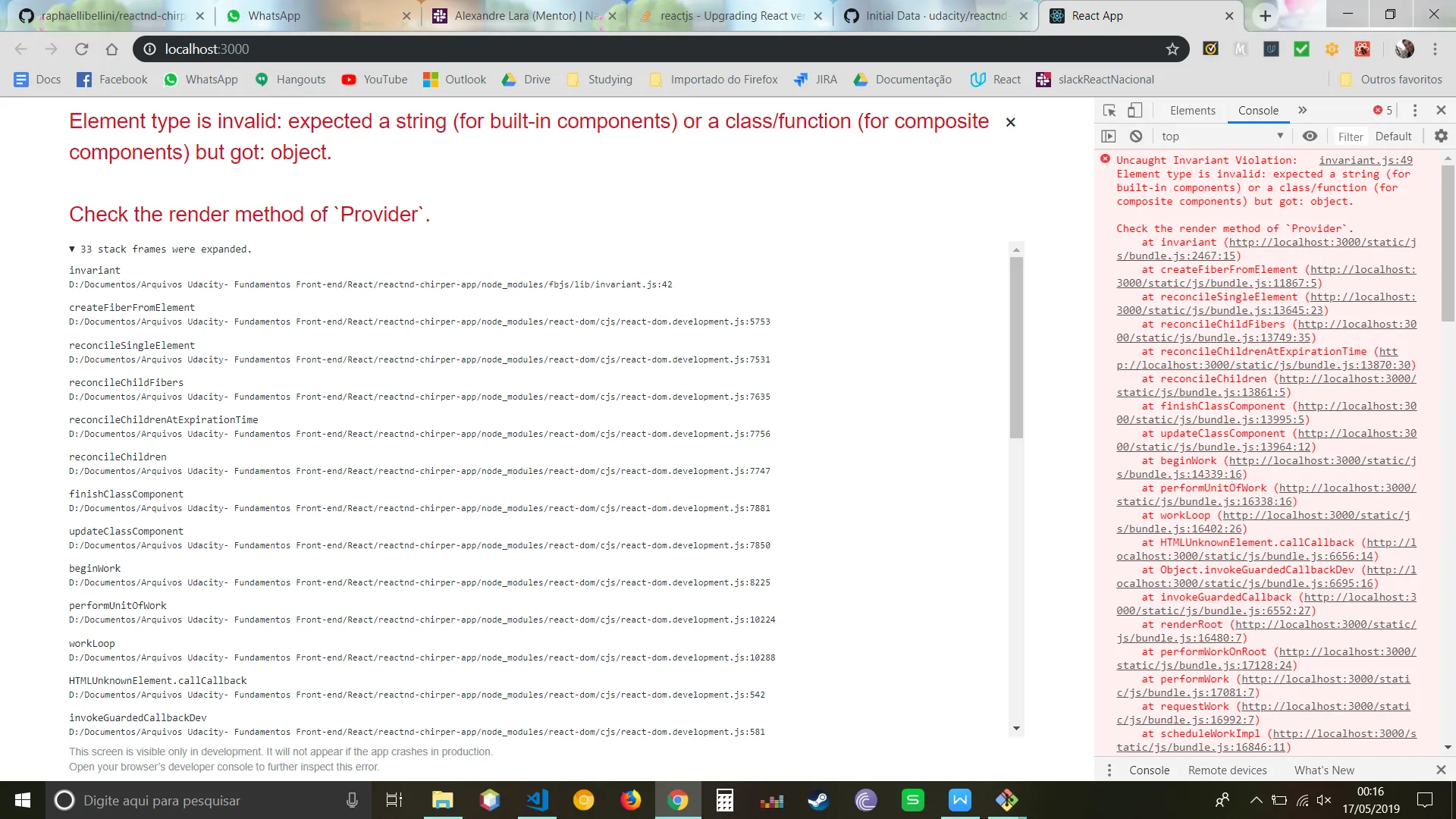 “Element type is invalid: expected a string (for built-in components) or a class/function (for composite components) but got: object.”