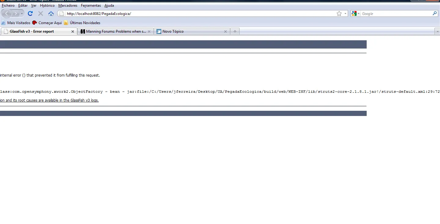 Unable to load bean: type: class:com.opensymphony.xwork2.ObjectFactory - bean - jar:file:/C:/Users/jferreira/Desktop/UA/PegadaEcologica/build/web/WEB-INF/lib/struts2-core-2.1.8.1.