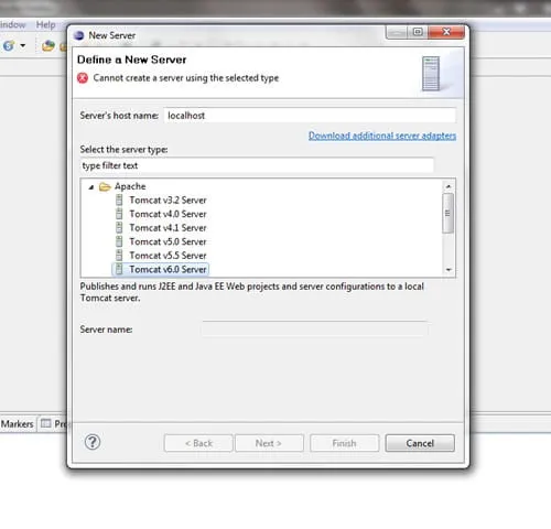 Mas quando vou criar uma aplicação web da a seguinte mensagem de erro quando escolho o Tomcat V6.0.