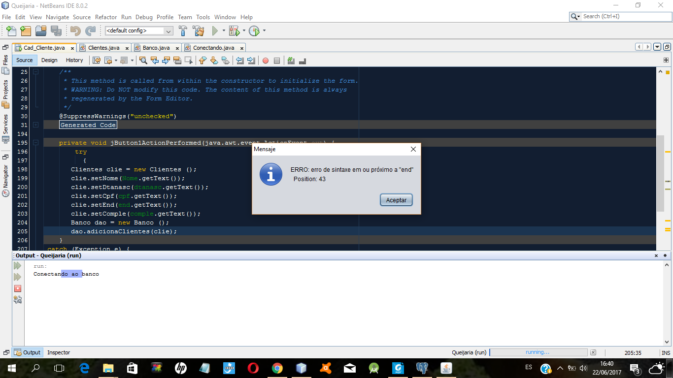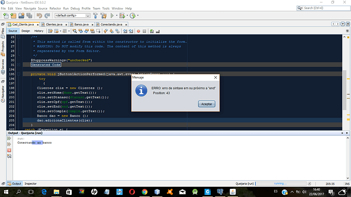 Pessoal, estou criando um controle de estoque. Fiz uma conexao com o banco de dados, mas quando eu execute, sempre dá esta mensagem. Será alguém poderia me ajudar?