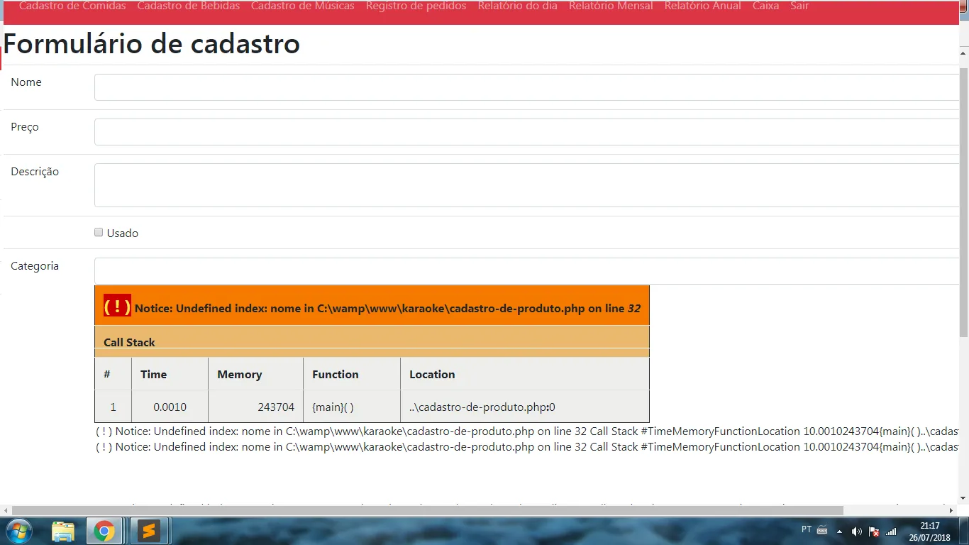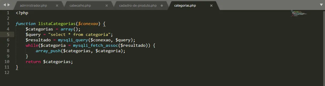 Eu estou estudando desenvolvimento em PHP e estou fazendo uma rotina que lista as categorias dos produtos dentro de uma ComboBox, vou postar aqui o código que eu criei e o erro que da ao carregar a pagina se alguém souber me ajudar com o erro eu agradeço.