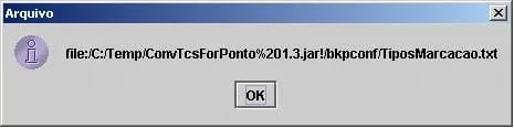 JOptionPane.showMessageDialog(null,urlFile.getFile(),"Arquivo", JOptionPane.INFORMATION_MESSAGE);