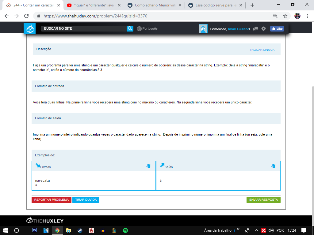 System.out.printf("Informe uma letra para verificar a ocorrencia:\n");