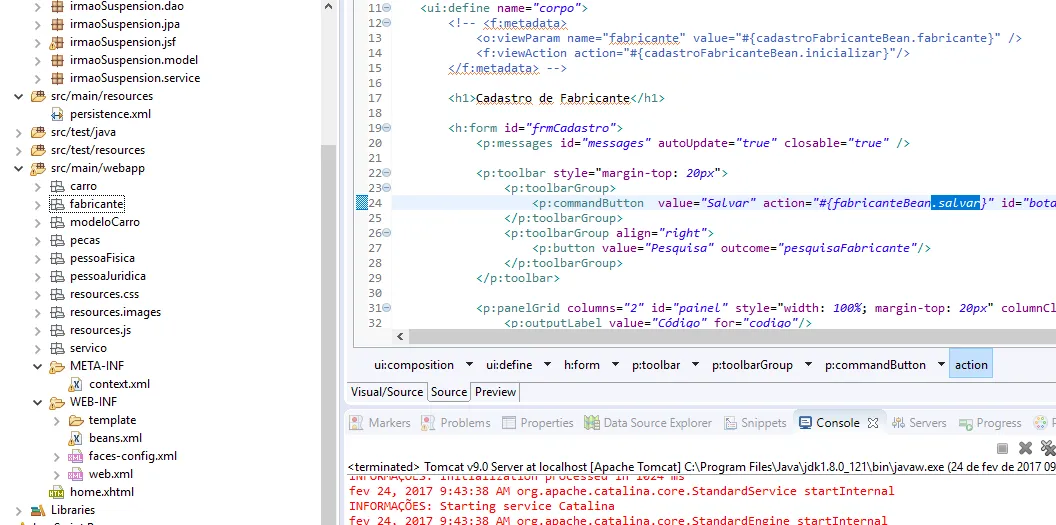 <p:commandButton value="Salvar" action="#{fabricanteBean.salvar}" id="botaoSalvar" update="frmCadastro"/>