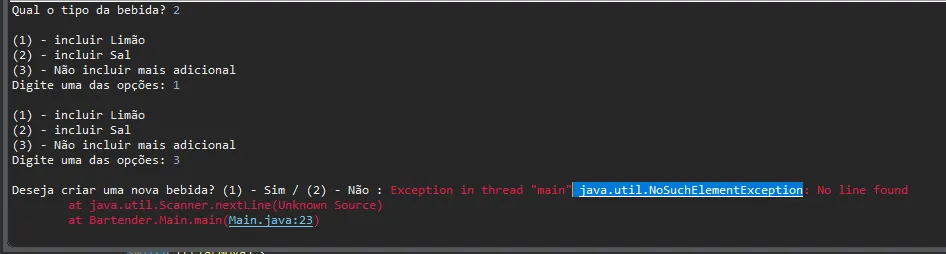 Exceção java.util.NoSuchElementException
