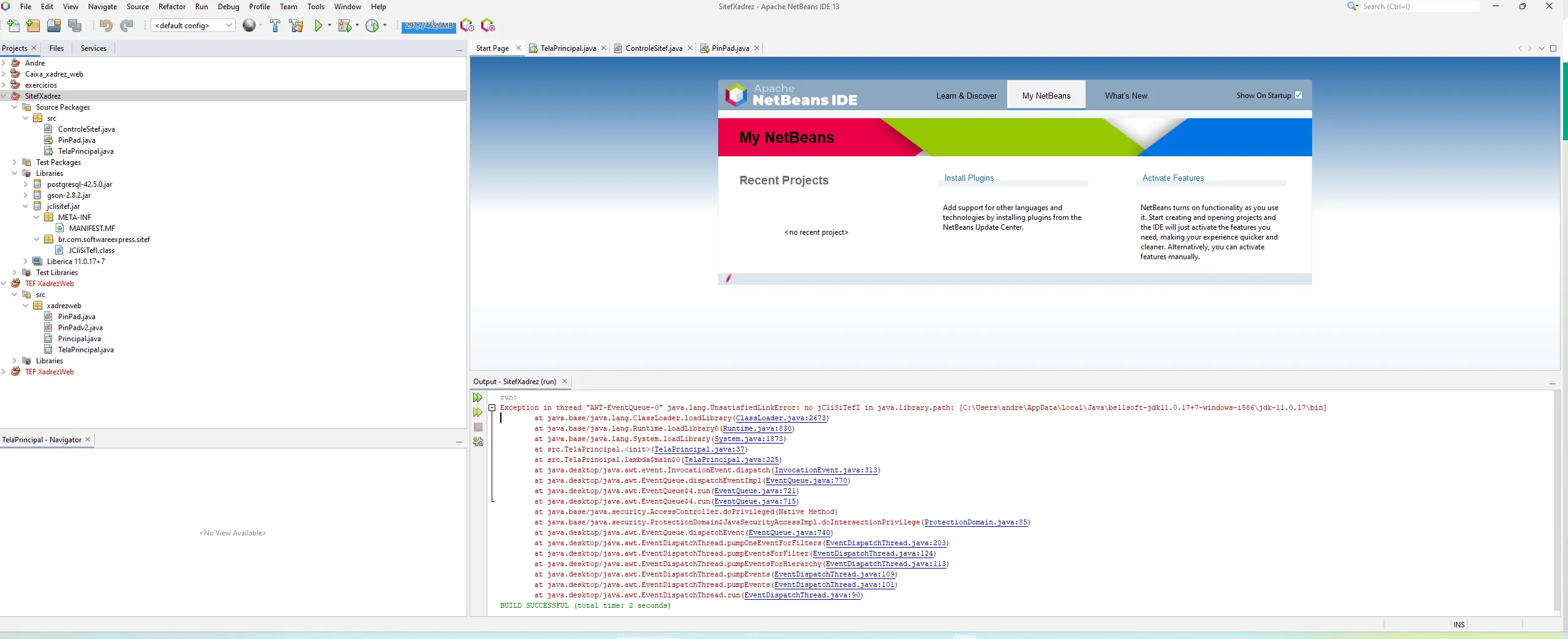 Exception in thread "AWT-EventQueue-0" java.lang.UnsatisfiedLinkError: no jCliSiTefI in java.library.path