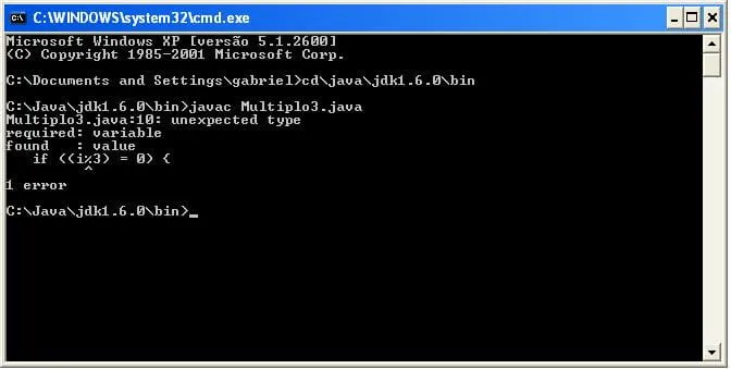 O exercício da apostila "Caelum - Java e Orientação a Objetos", pag 18 (22 em pdf) pede para imprimir uma determinada quantidade de nº e escrever se eles são múltiplos de três. Na apostila da a dica para usar o operador "%", não consegui compilar, aparece o erro em anexo[img] [/img]. Abaixo segue o código que criei: