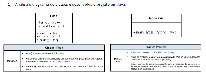 Identifique as classes, atributos e métodos necessários para modelar e implementar: