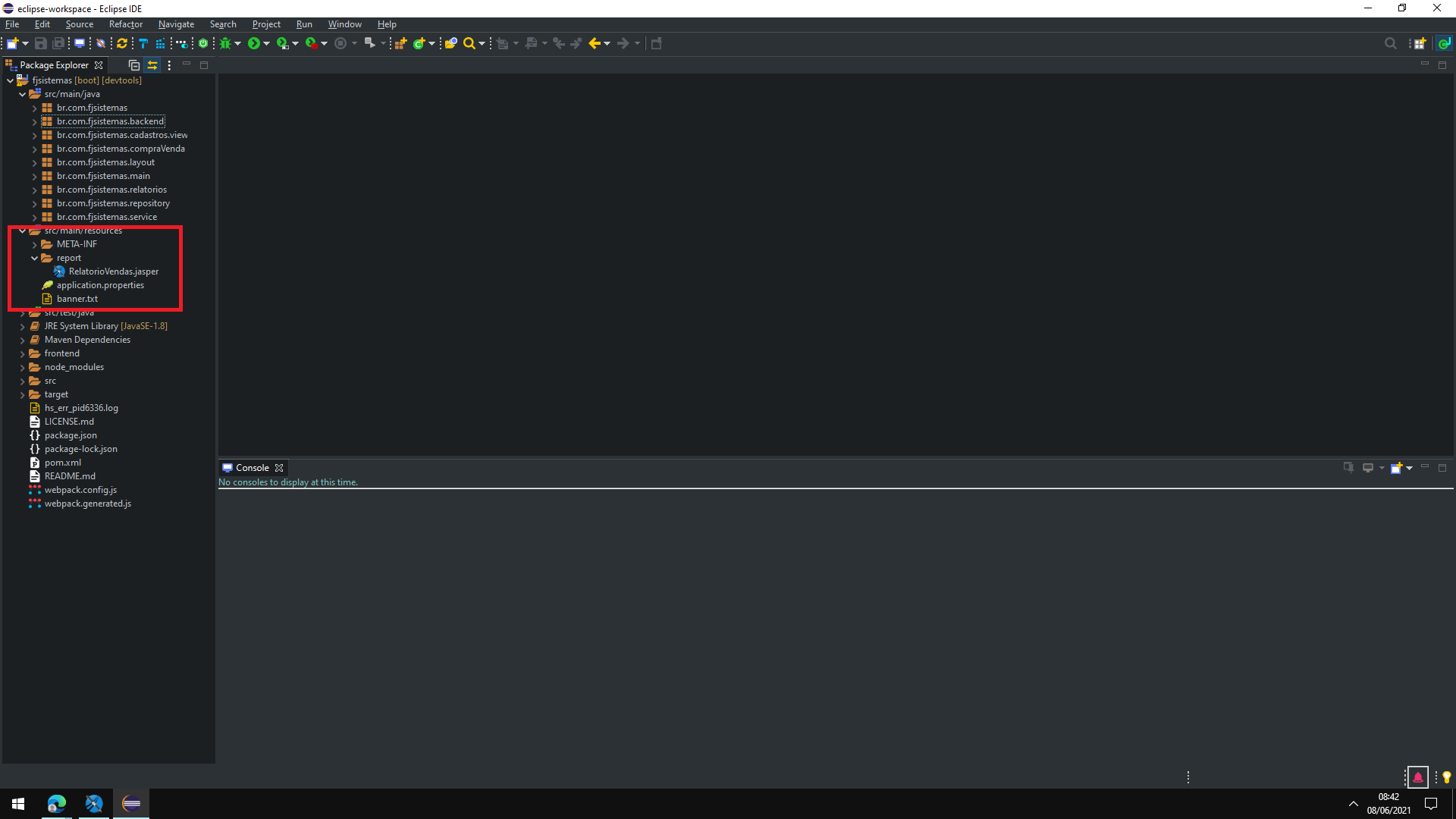 Eu criei um RelatorioVendas.jasper, ele foi criado com JasperStudio, ele está pronto, já está com a query, já está compilado, tudo certinho.