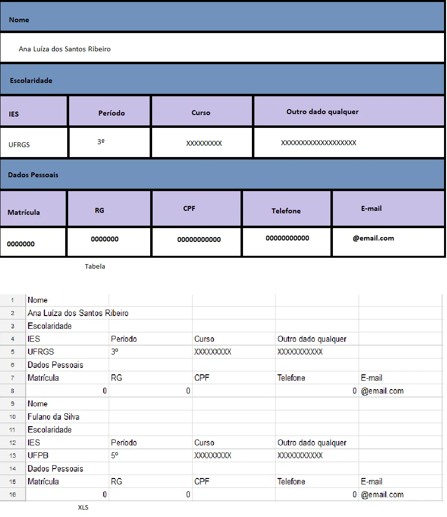 Um modelo se não tiver ficado claro(em cima a table da página e abaixo o xls gerado)