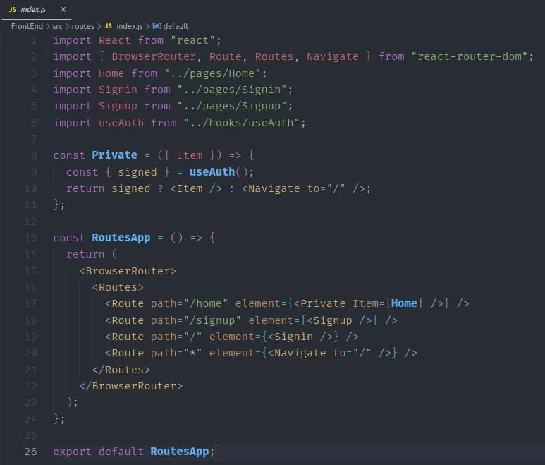 Estou migrando do PHP para o React/Node. Fiz um sistema de autenticação, onde o Front comunica o Back e verifica se o token é válido ou não. O problema é que as rotas do meu sistema estão definidas no Front. Cada rota carrega um componente diferente, uma funcionalidade diferente.