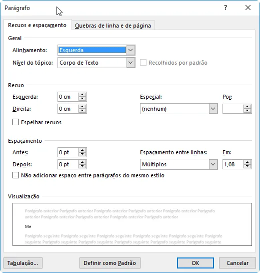 Tela de configuração do Word: