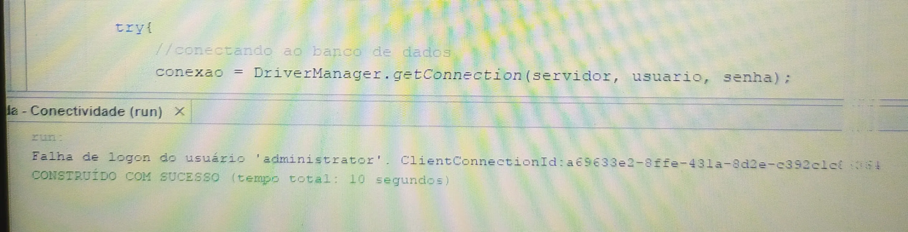 conexao = DriverManager.getConnection(servidor, usuario, senha);