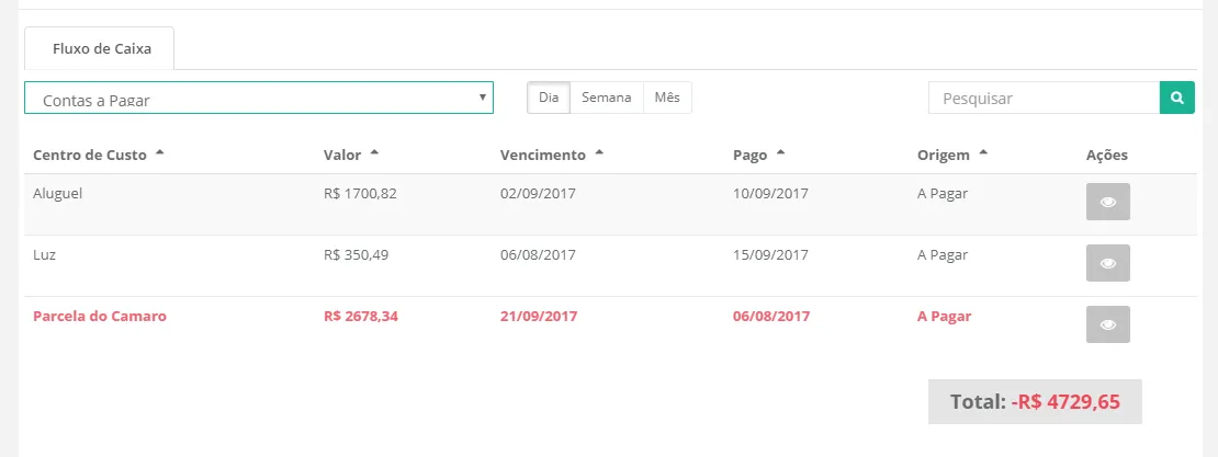 Na foto está o exemplo de que preciso. Veja que foi selecionado contas a pagar, e a tabela mostrou apenas isso. Mas quando o usuário clicar em dia, por exemplo, a tabela vai mostrar todas as contas com vencimento em 06/08/2017. Já que hoje é 06/08/2017.