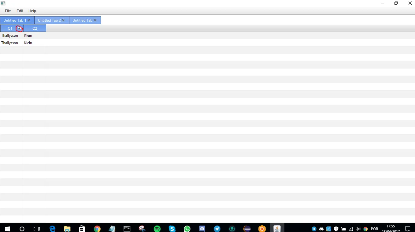 Olá. Eu gostaria de saber se alguém pode me dar um exemplo de como formatar aquela seta que fica nas colunas das tabelas no JavaFX quando a gente clica nelas. Eu só preciso remover a parte branca mesmo. Aqui está o problema: