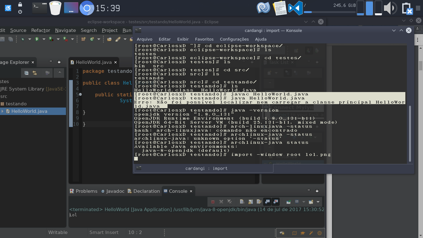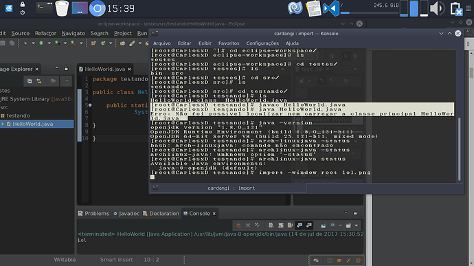 (Comandos usados para tentar arrumar: archlinux-java fix)