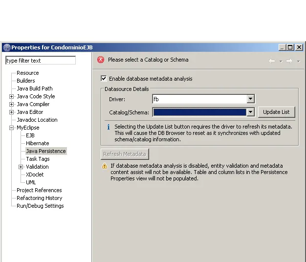 acabei de terminar meu modelo de dados, ja criei o banco de dados (firebird), criei um projeto (ejbproject), agora estou tentando criar as classes para o projeto, so que quando eu clico com direito do mouse e vou em myeclipe > generate entities & facedes, ele pede um catalog/schema, não to sabendo o que eh isso. Alguem pode me dar uma ideia?