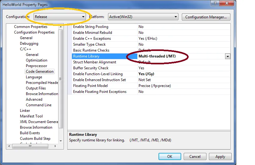 Obs - pode ser que seu programa dependa de outras bibliotecas que foram compiladas com as opções padrão (/MDd ou /MD), então essa mudança de opções de compilação não vai funcionar e você vai ter de mandar um instalador das bibliotecas de runtime do Visual Studio.
