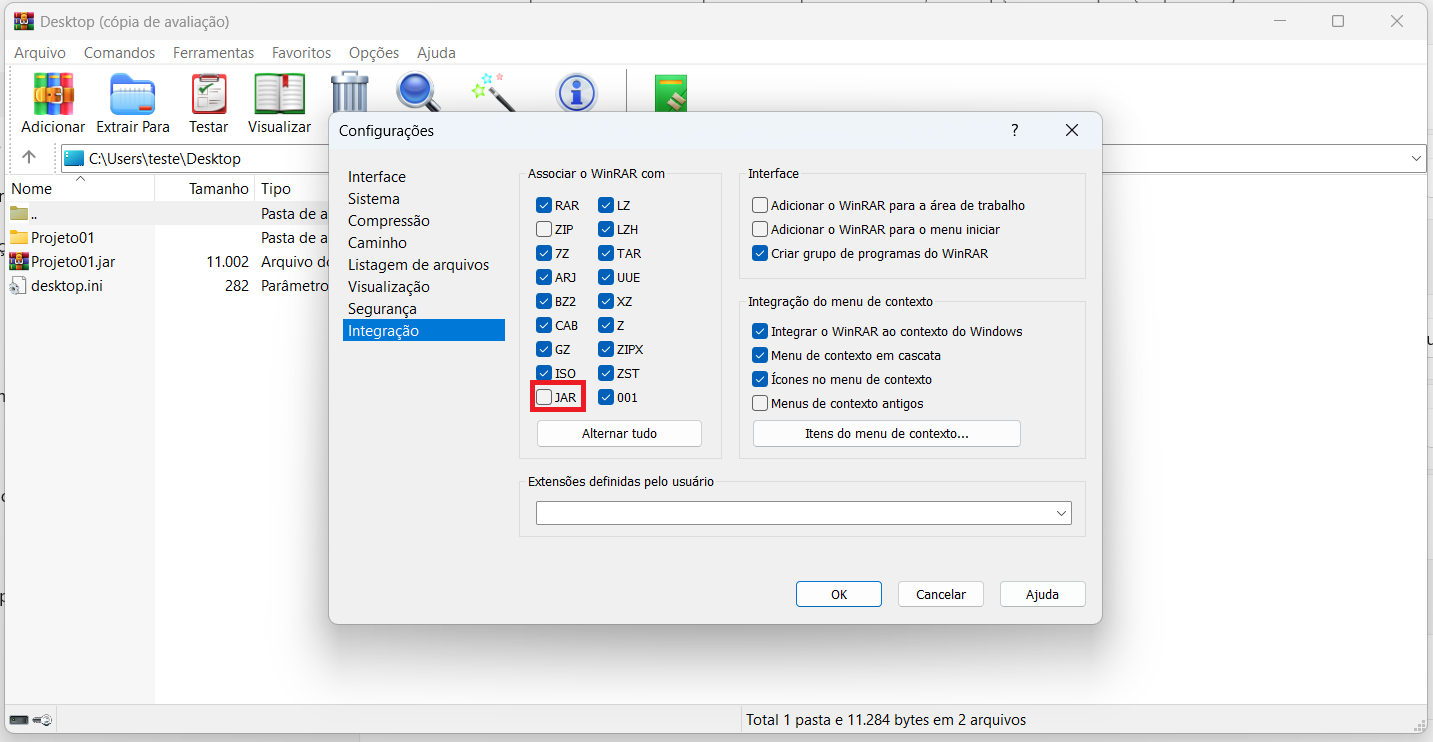 Provavelmente você configurou o seu WinRar para abrir arquivos JAR