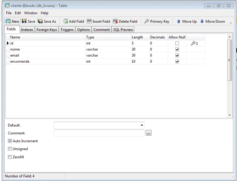 Cliente - nome, email, encomenda (tipo Livro) -,