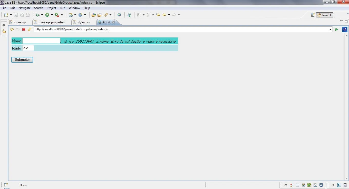 Galera, estou usando o livro Core JavaServer Faces pra aprender JSF e tem uns exemplos que estão tendo resultados diferentes do que há no livro. Por exemplo este:
