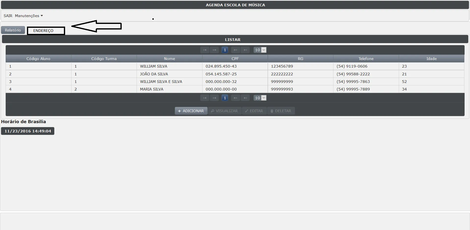 O que eu queria fazer é colocar o cadastro de ALUNO e ENDEREÇO na MESMA TELA e realmente não descobri ainda como fazer isso!!!