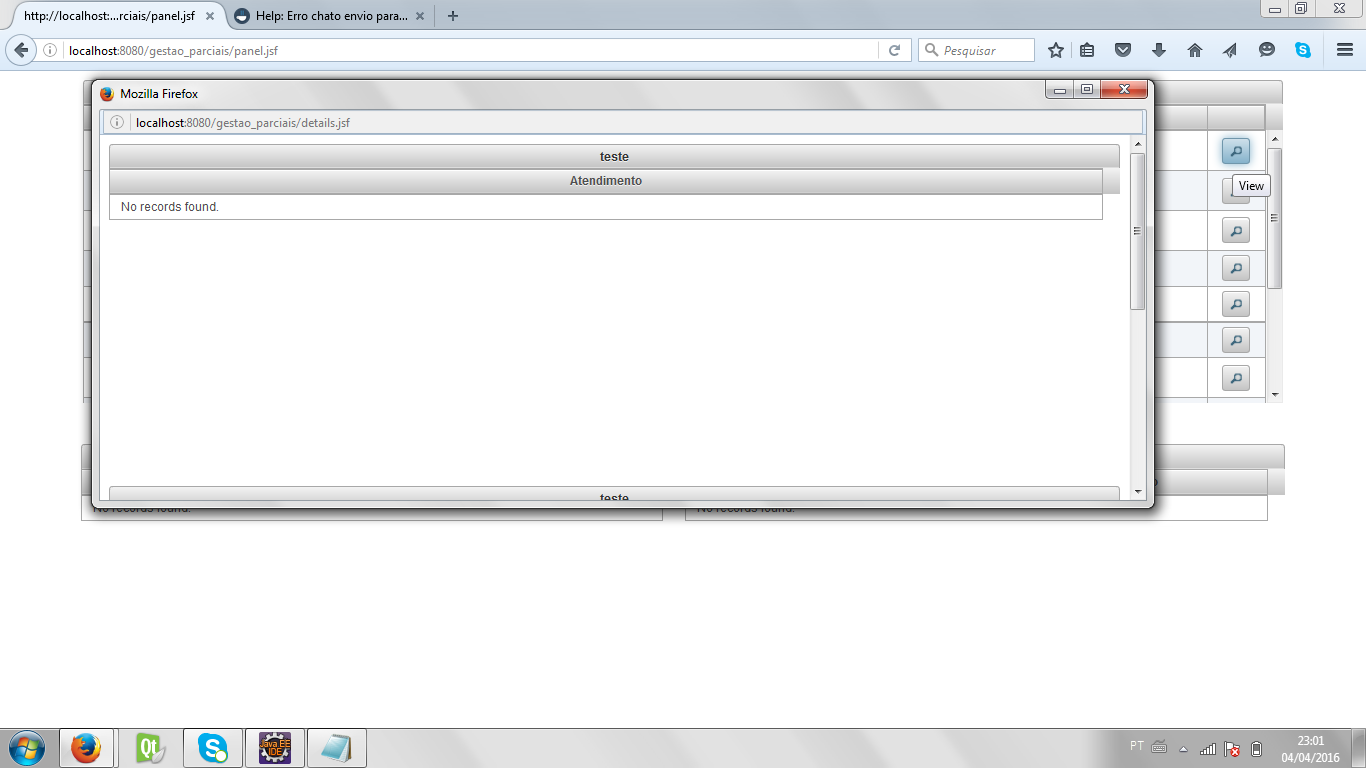 Essa é pagina do pop-up que deveria carregar o Datatable com retorno do parametro