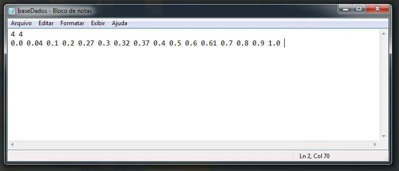 em seguida os valores em ponto flutuante (de 0 até 1 com precisão de uma casa decimal) representando a