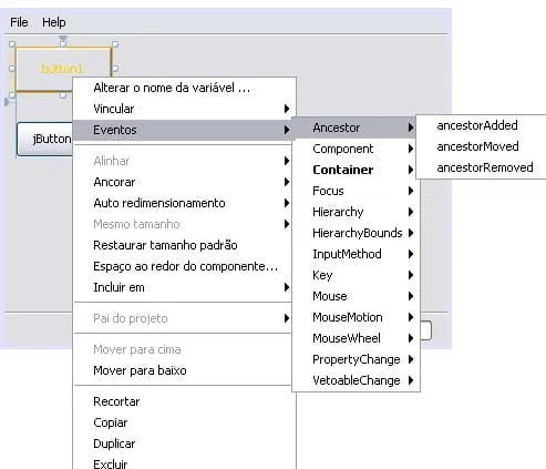 Isso eu ja consegui, mas quando faço isso, o botão herdado não tem o evento Action(ActionPerformed), que acho que equivale ao OnClick do Delphi.