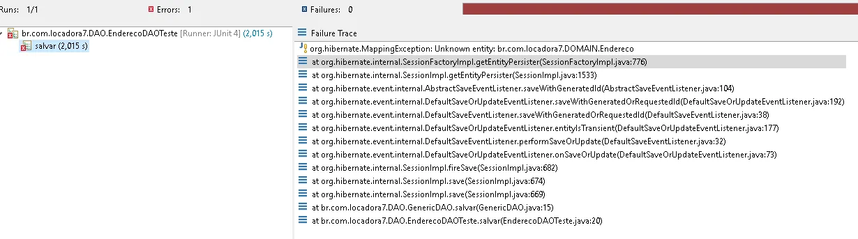 org.hibernate.MappingException: Unknown entity: br.com.locadora7.DOMAIN.Endereco