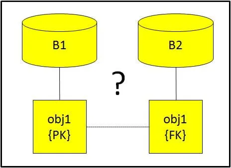Eu acho impossível fazer o relacionamento de 2 objetos em databases diferentes.