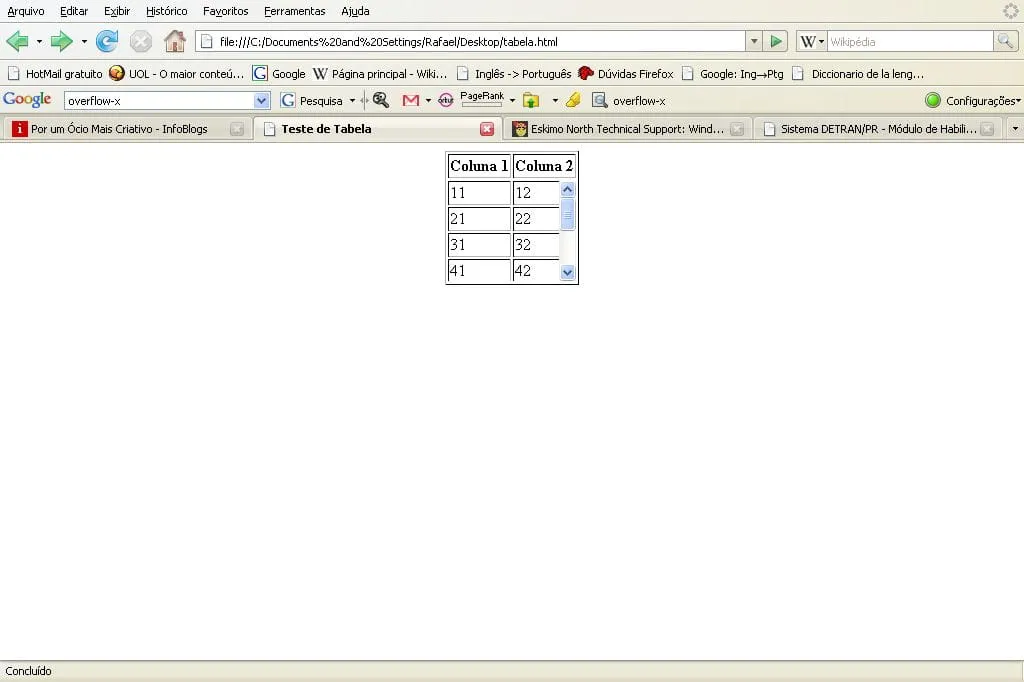 No Firefox a tabela aparece como espero: O cabeçalho fixo e scroll para as demais linhas. Entretanto no Internet Explorer isso não acontece: As linhas “crescem”, como se quisessem ficar com a altura determinada para o