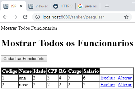 message An exception occurred processing JSP page /mostrartodosfuncionarios.jsp at line 35