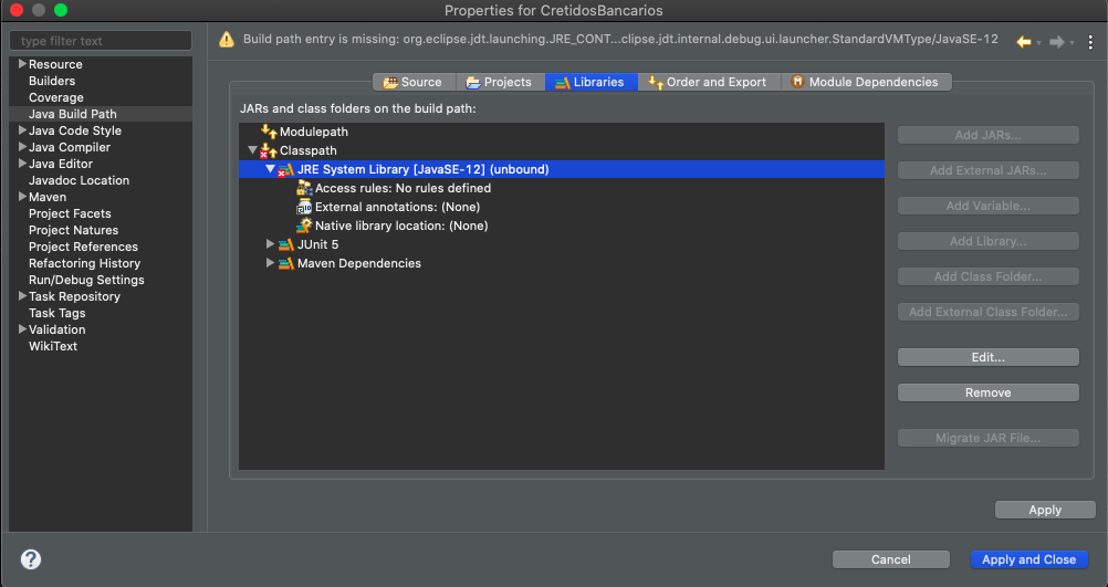 Estou com o problema com o projeto maven, me aparece nele um icone de exclamação no repositorio. Então não consigo executa-lo.