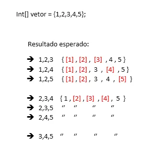 Opa blz, eu errei na formulação da pergunta , desculpe man, eu sei bem sobre o length, basicamente o que eu quis dizer é que, o vetor não terá um tamanho definido, o que realmente não interessa muito, mas é por que faltou dizer que as escolhas dos números de saída não serão de 3 em 3 sempre como no exemplo da foto, e é isso que eu estava achando complicado, se fosse só de 3 em 3 eu conseguiria fácil usando 3 for um dentro do outro, mas se for escolhendo de 4 em 4 ou 5 em 5 números de saída, fica complicado por que eu precisaria de mais for