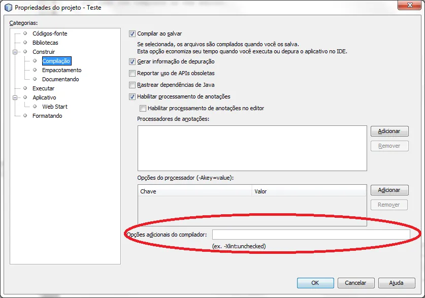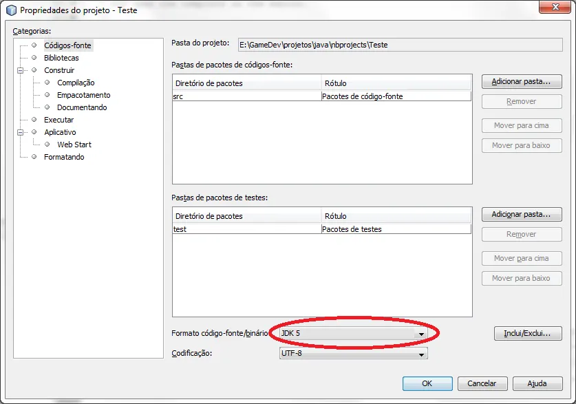 Em construir/compilação, certifique-se que não há a opção -source 1.4 em “Opções adicionais do compilador” (ver figura 2, em anexo).