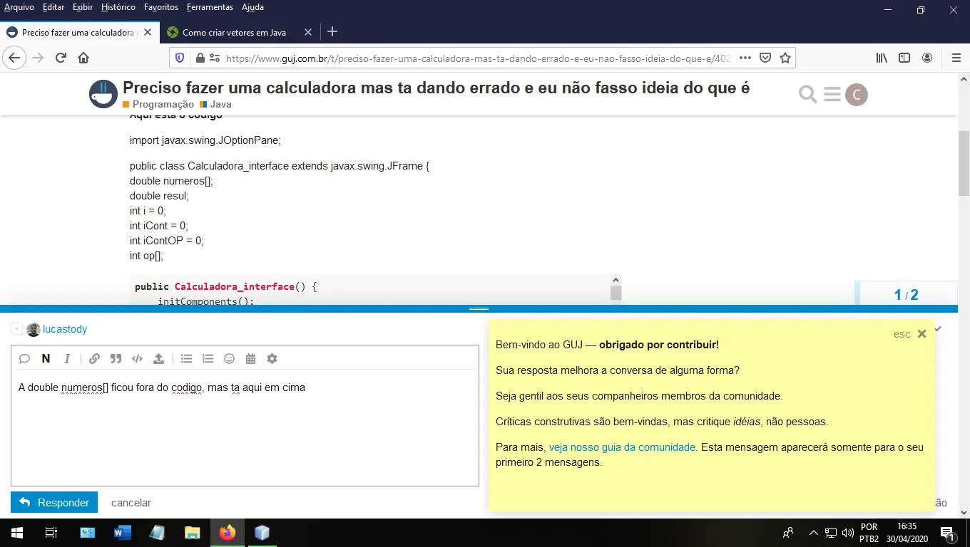 alguém pode analisar meu código e me dizer onde eu estou errando?